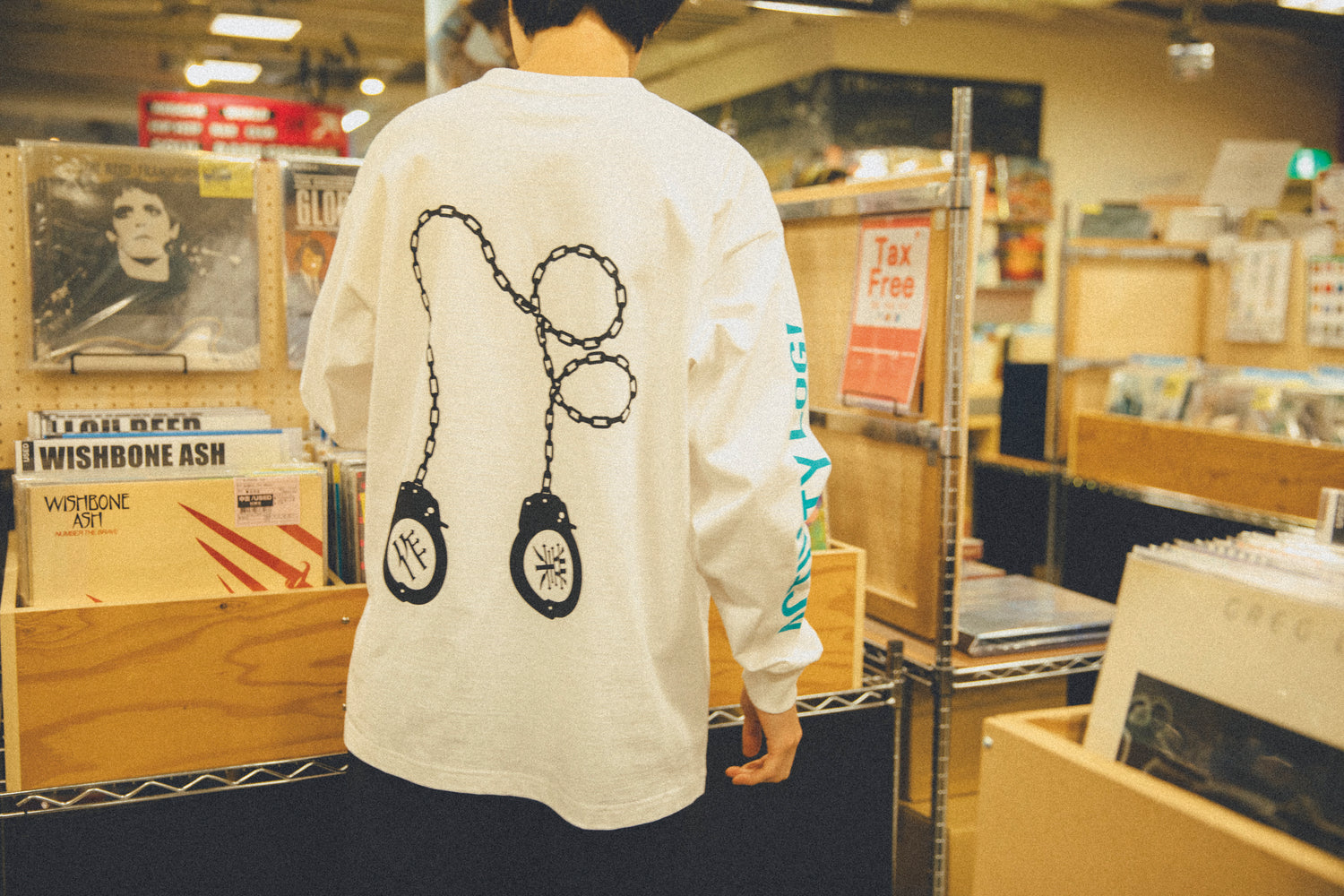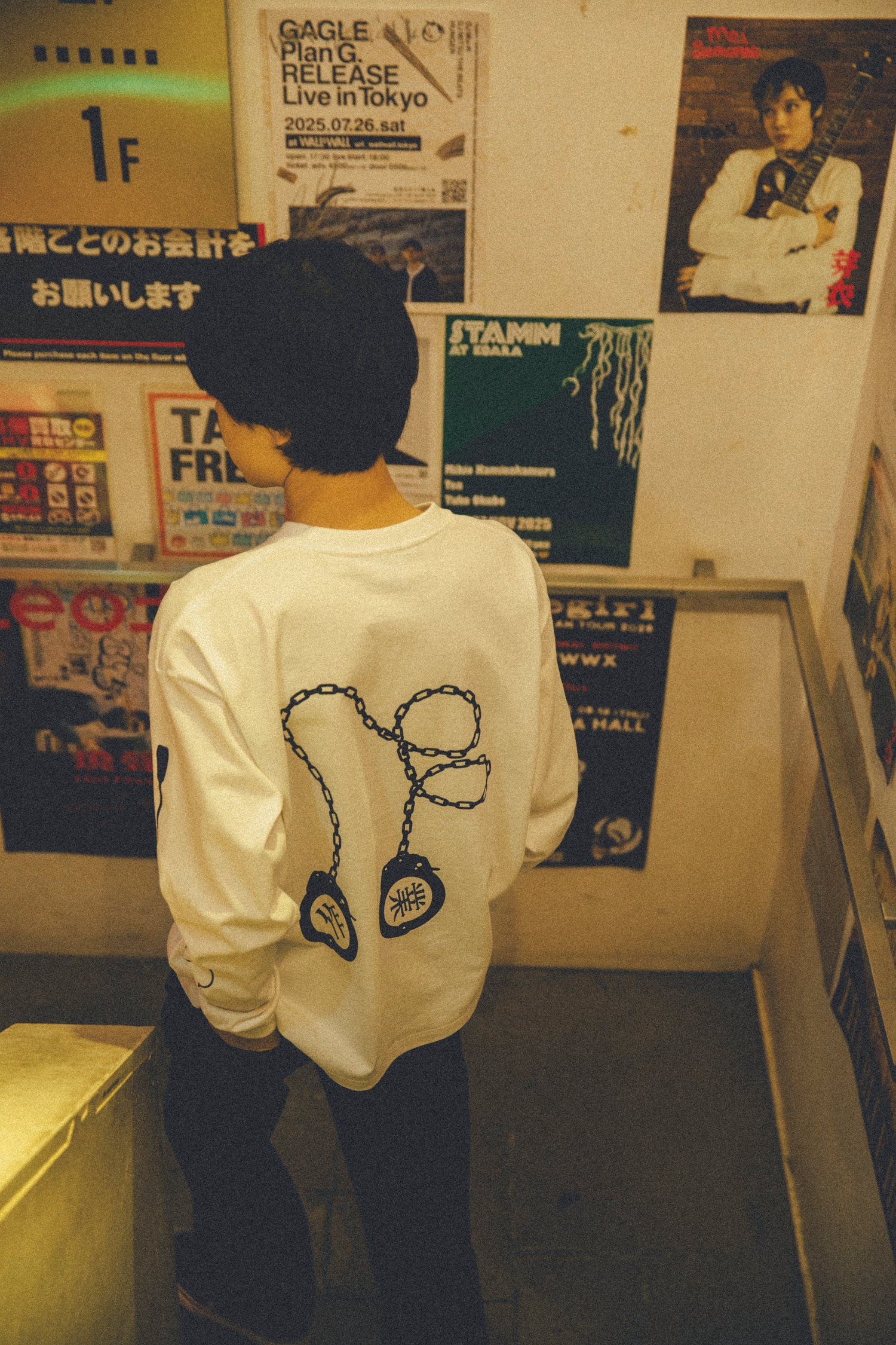 中原が2004年から3年半にわたり書き続けた日記を書籍にまとめ上げ、ドゥマゴ文学賞を受賞した『中原昌也作業日誌 2004→2007』(boid刊)の装丁画をモチーフにしたロンT。右袖に“ACTIVITY LOG!”の文字、左袖に乗馬鞭のイラストを配置。背面には“作業”の文字と共に手錠をデザイン。