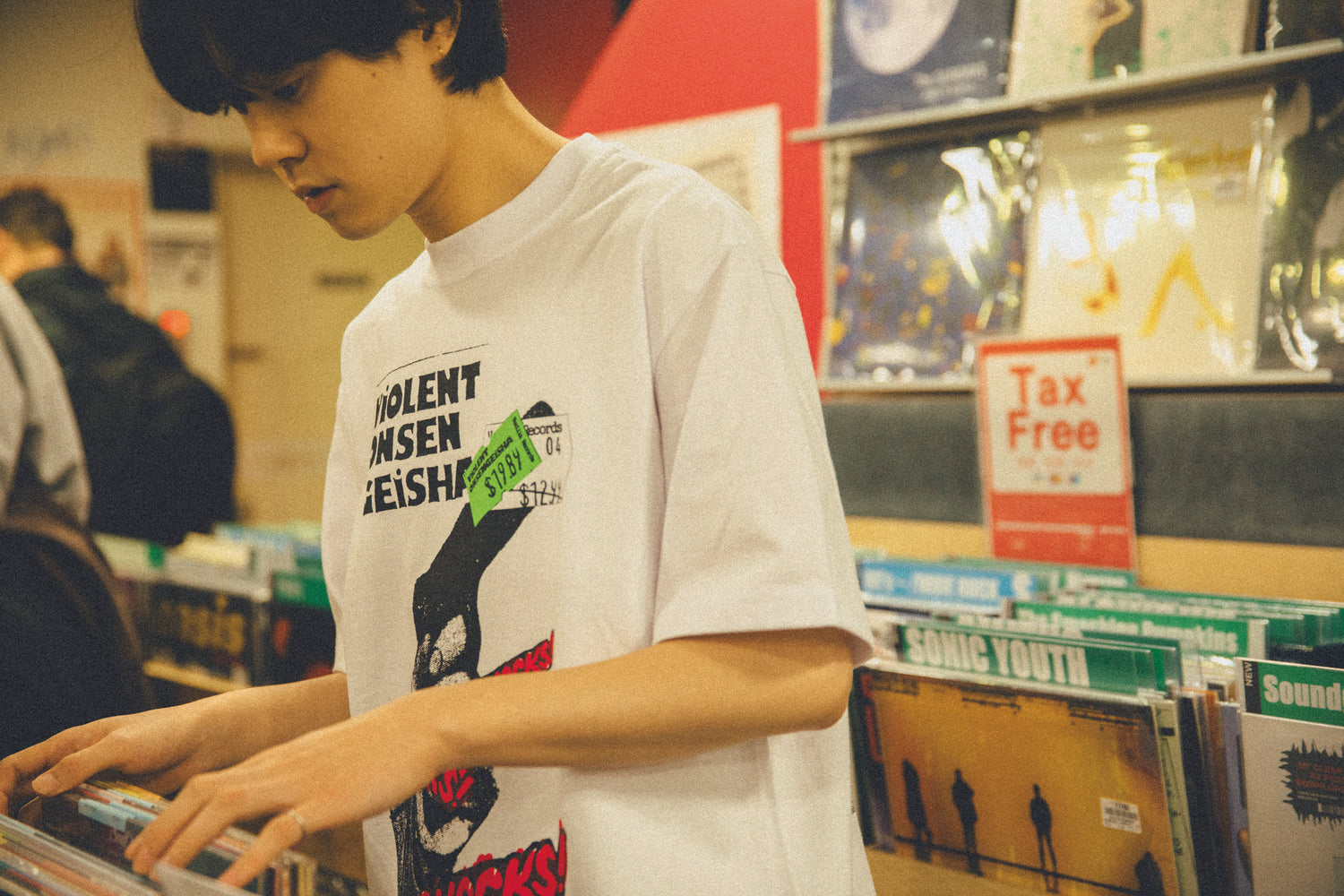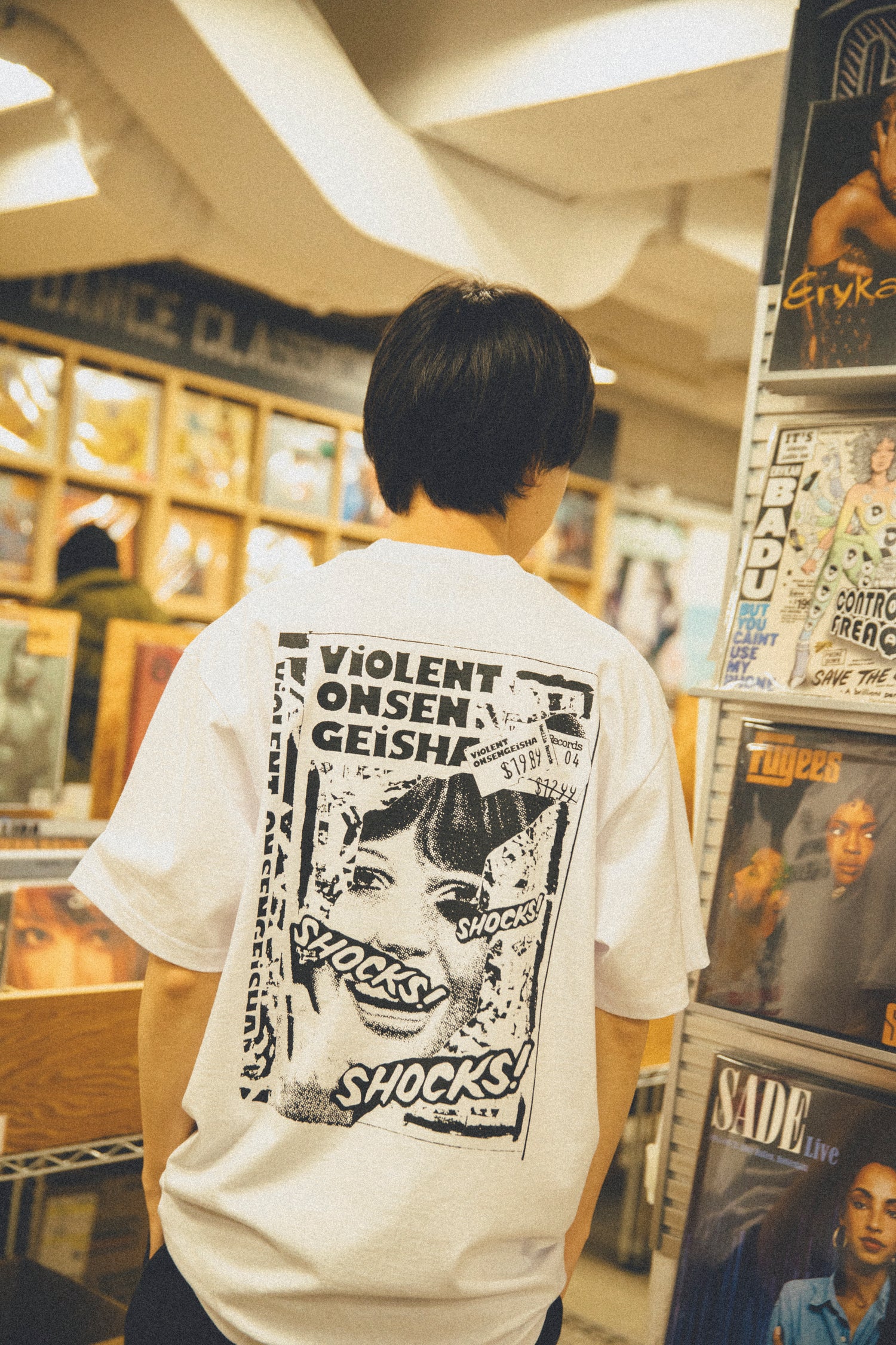 中原昌也リミックスTeeカプセルコレクションより、暴力温泉芸者が1989年にVanilla recordsよりリリースしたカセット作品より、中原自身が手がけたジャケット・デザインをコラージュしてプリント。